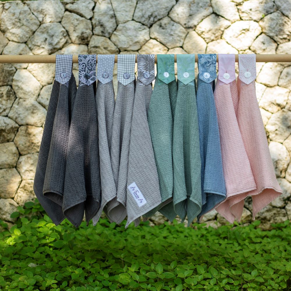Luxurious cotton towel with secure button closure - dries quickly and hangs easily - Elevates your kitchen with a touch of luxury - Expertly designed and crafted.